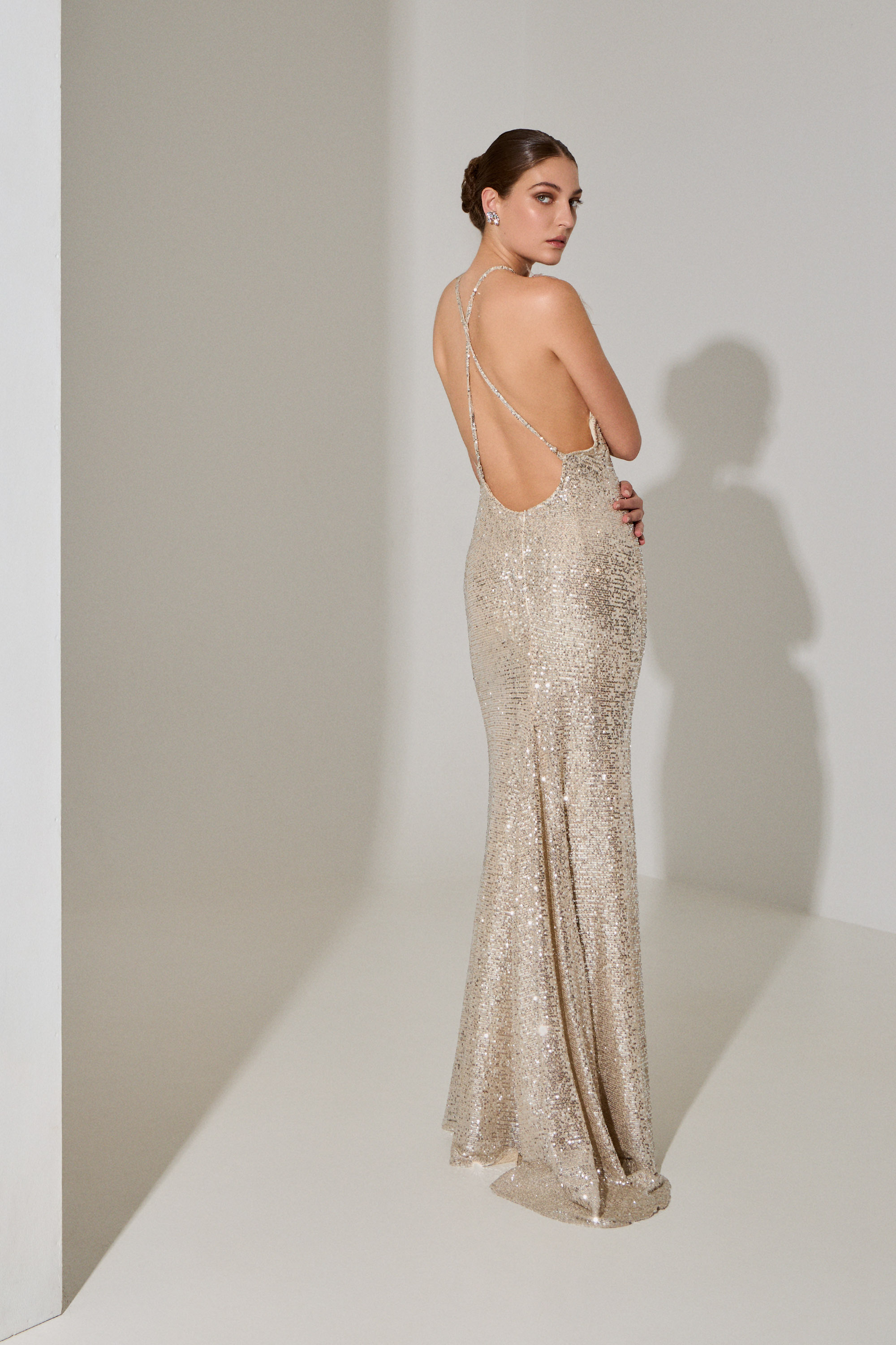 φορεμα JULIETTE γοργονε εξωπλατο ολο παγιετα