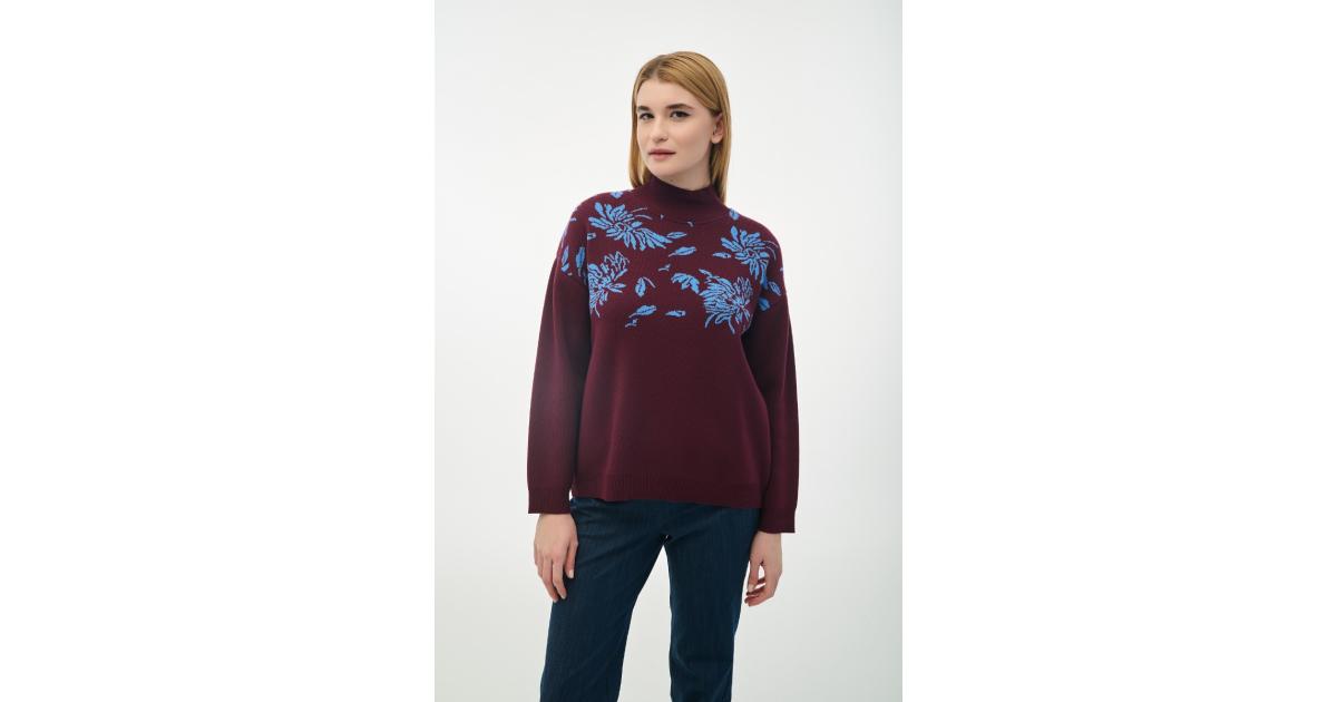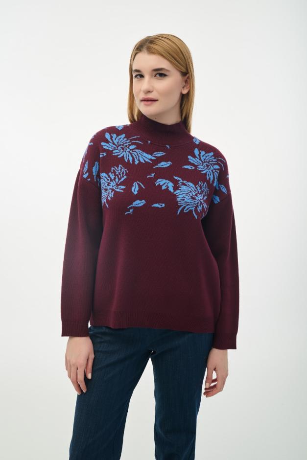 μπλουζα πλεκτη με λουλουδια κοντραστ